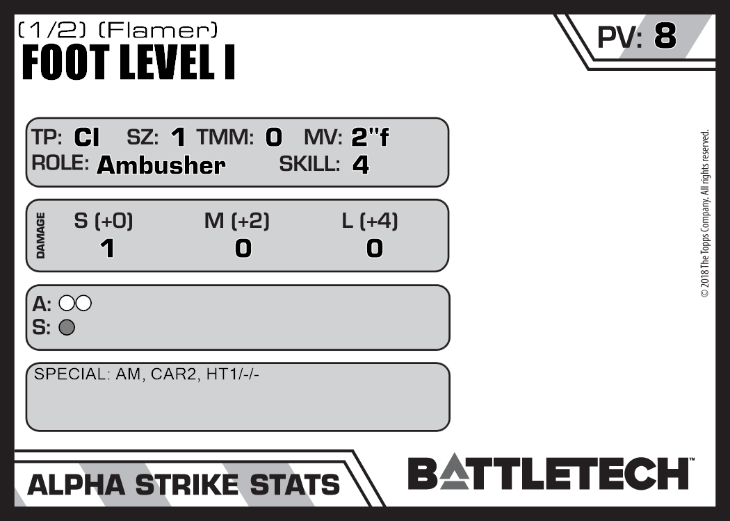 | Foot Level I (1/2) (Rifle, Energy) | NA | 9 | Standard | TW | |