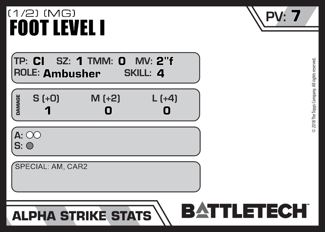 | Foot Level I (1/2) (Rifle, Energy) | NA | 9 | Standard | TW | |