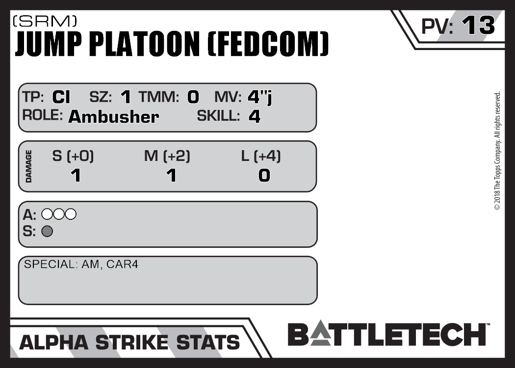| Jump Platoon (FedCom) (LRM) | NA | 13 | Advanced | TO:AUE | |