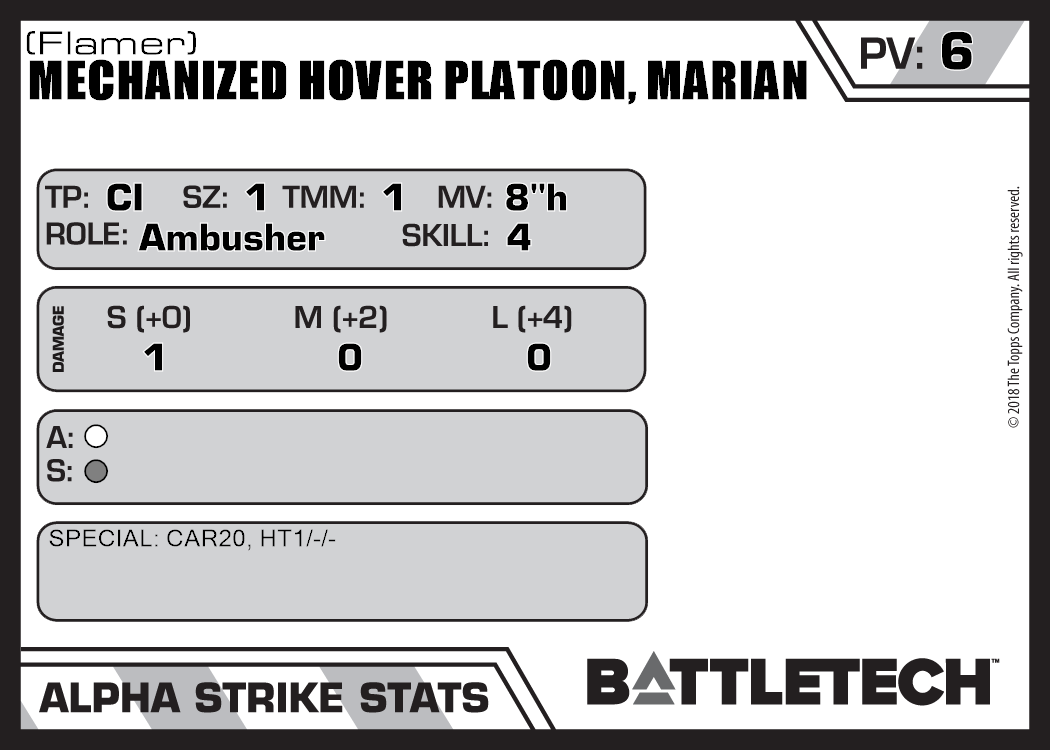 | Mechanized Hover Platoon, Marian (Rifle, Energy) | NA | 8 | Standard | TW | |