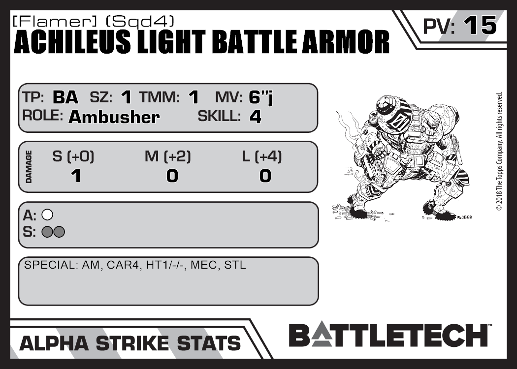 | Achileus Light Battle Armor [Flamer] (Sqd6) | 300 | 16 | Standard | TR:3058U | |