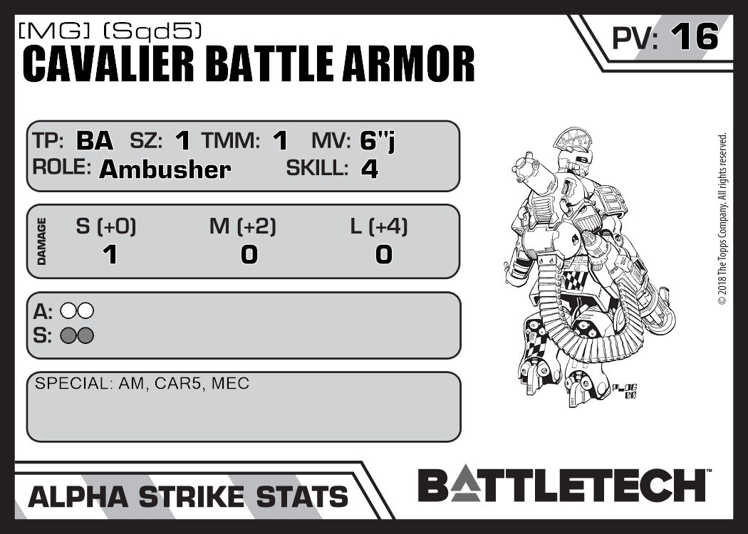 | Cavalier Battle Armor [MG] (Sqd4) | 199 | 13 | Standard | TR:3058U | |