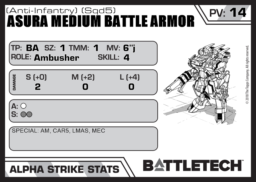 | Asura Medium Battle Armor (Anti-Infantry) (Sqd4) | 200 | 14 | Standard | TR:3075 | |