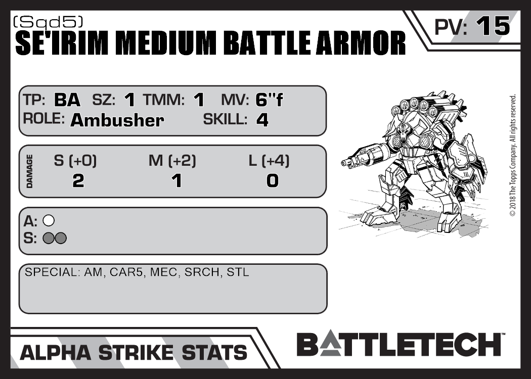 | Se'irim Medium Battle Armor (Sqd4) | 253 | 15 | Standard | TR:3075 | |