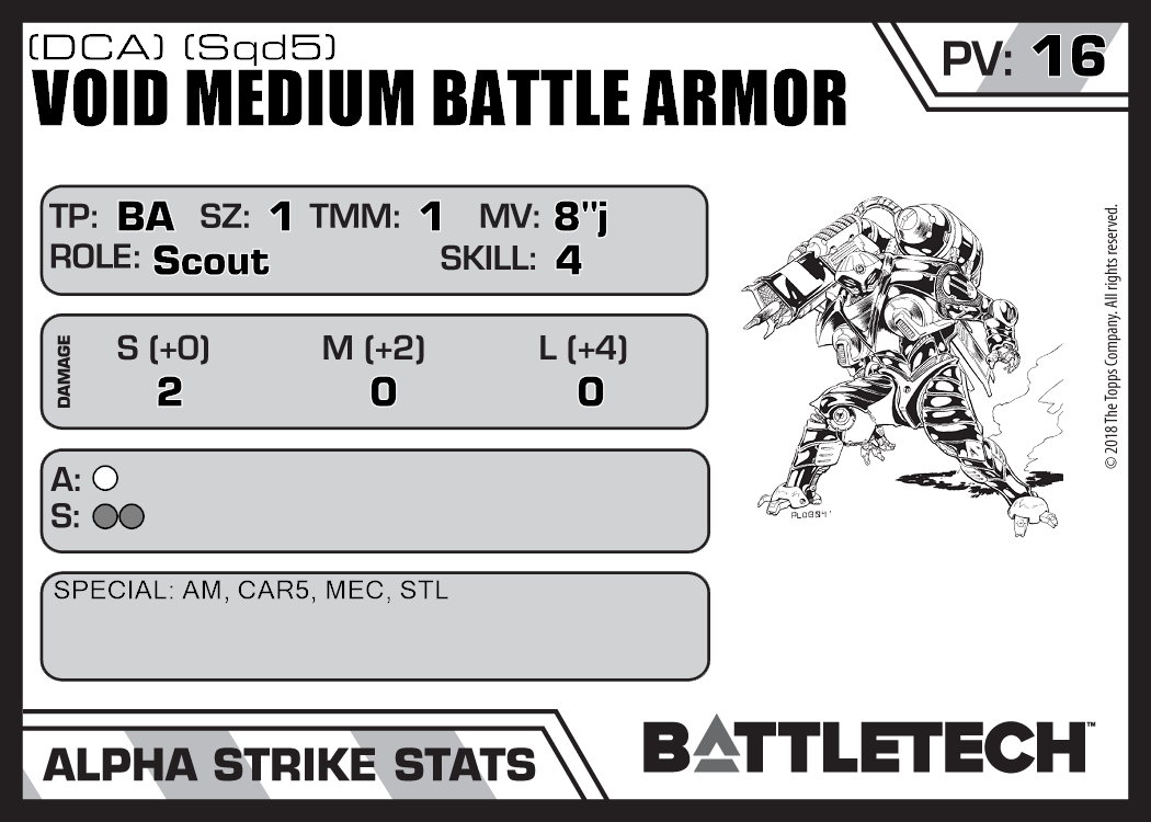 | Void Medium Battle Armor (DCA) (Sqd4) | 195 | 16 | Standard | TR:3075 | |