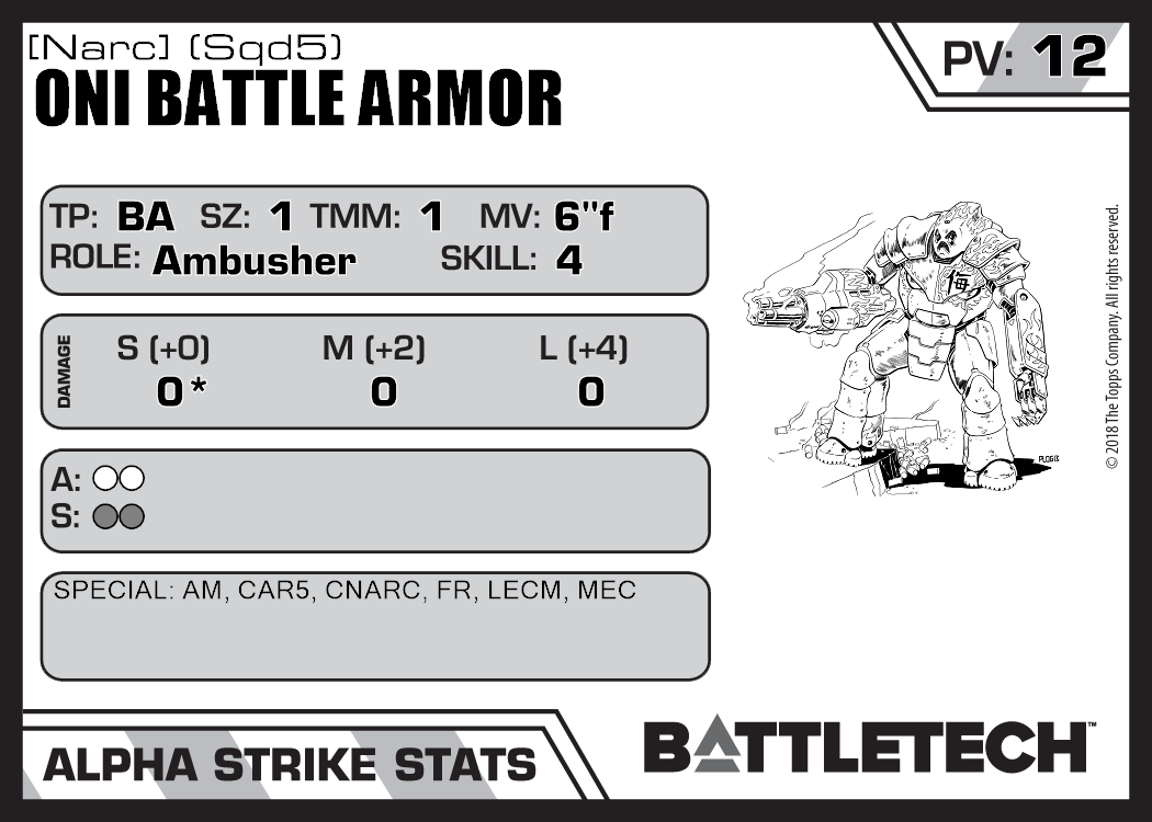 | Oni Battle Armor [Narc] (Sqd4) | 299 | 10 | Advanced | TR:3145 | |