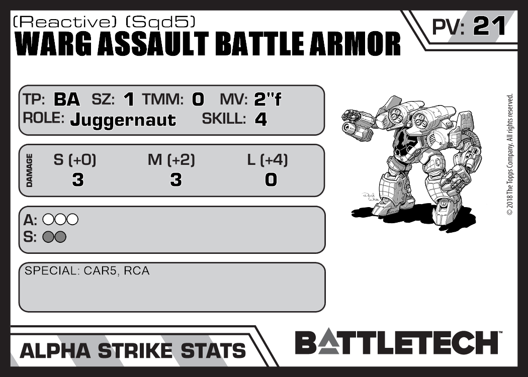 | Warg Assault Battle Armor (Reactive) (Sqd6) | 975 | 21 | Standard | TR:3145 |