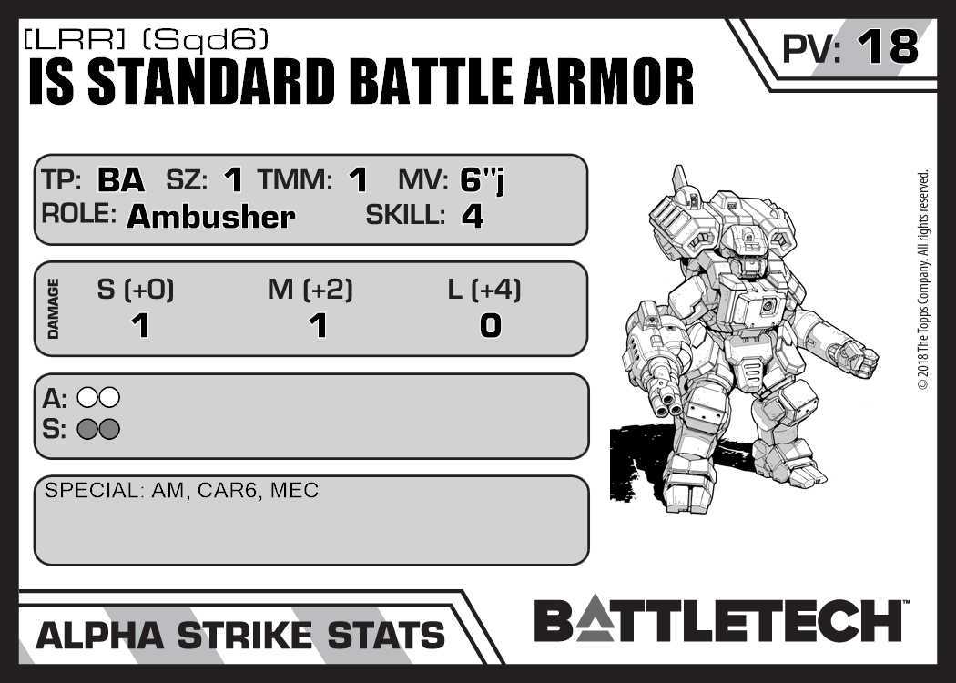 | IS Standard Battle Armor [LRR] (Sqd5) | 343 | 18 | Standard | TR:3058U | |
