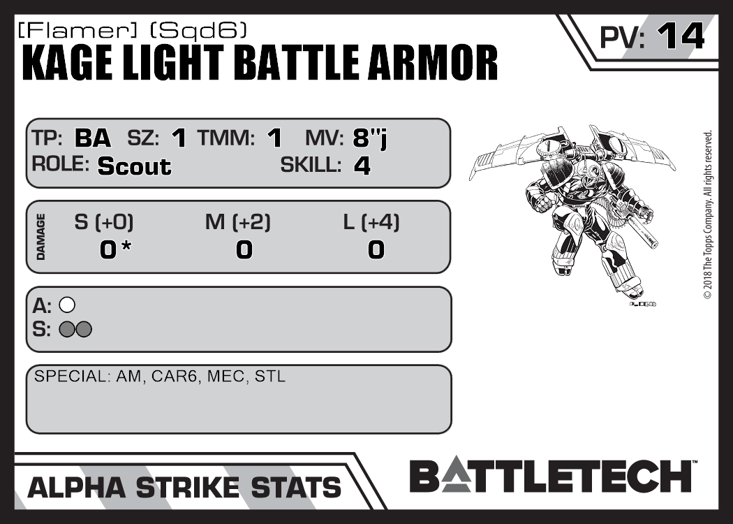 | Kage Light Battle Armor [ECM] (Sqd6) | 196 | 15 | Standard | TR:3058U | |