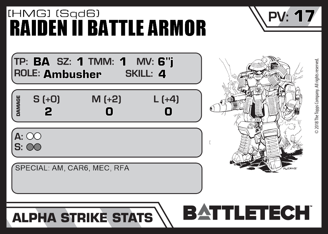 | Raiden II Battle Armor [Flamer] (Sqd6) | 450 | 17 | Standard | TR:3145 |