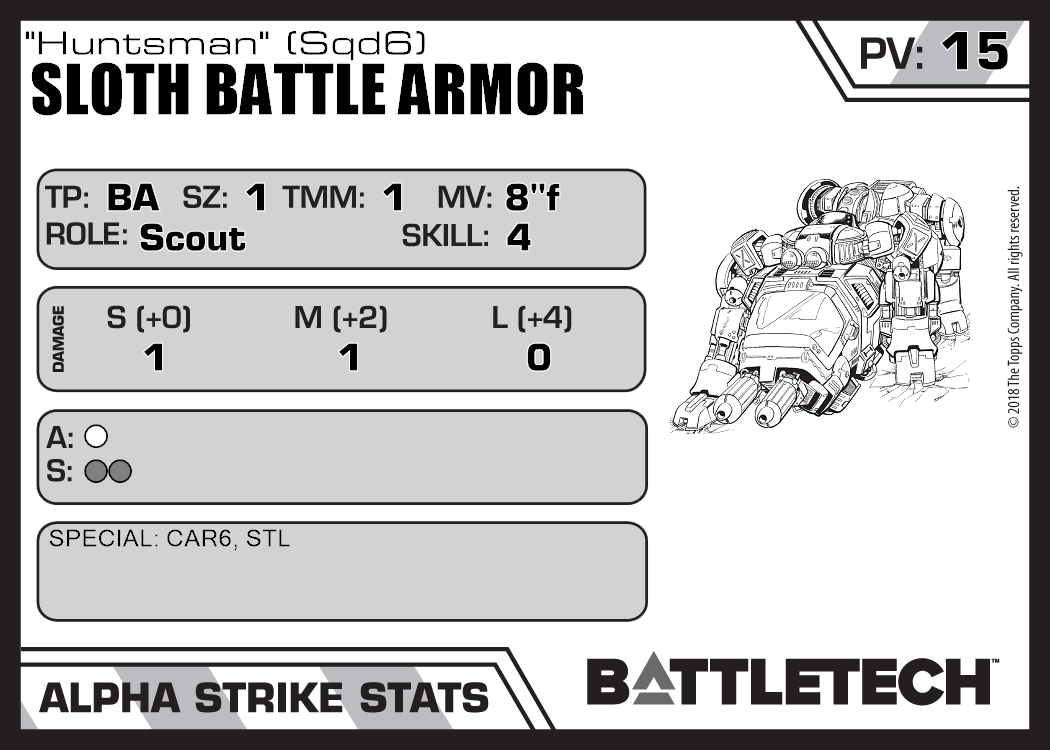 | Sloth Battle Armor (Sqd6) | 312 | 12 | Standard | TR:3058U |