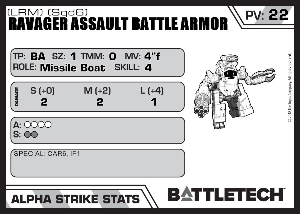| Ravager Assault Battle Armor (LRM) (Sqd4) | 404 | 16 | Standard | TR:3145 | |