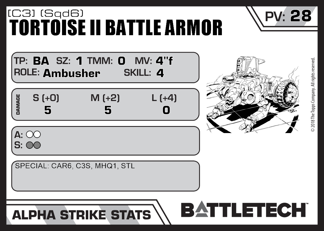 | Tortoise II Battle Armor [C3] (Sqd5) | 833 | 24 | Advanced | XTR:RotS 2 | |