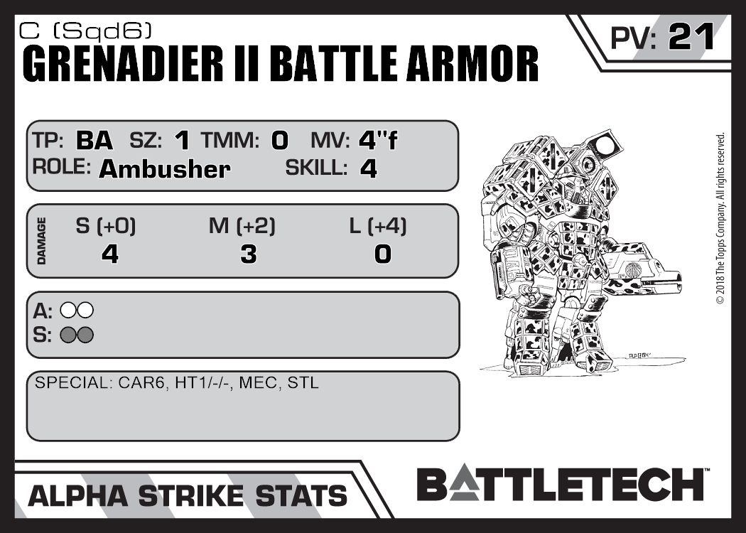 | Grenadier II Battle Armor A (Sqd6) | 653 | 20 | Standard | XTR:RotS 3 | |