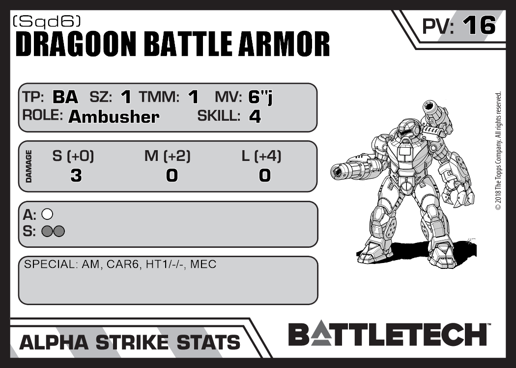 | Dragoon Battle Armor (Advanced) (Sqd6) | 445 | 15 | Advanced | RG29 |