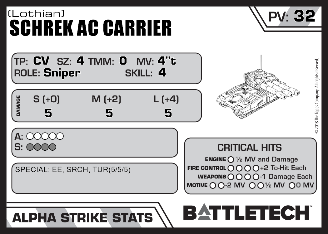 | Schrek AC Carrier | 773 | 24 | Introductory | TR:3039 | |