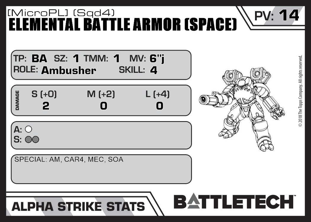 | Elemental Battle Armor (Space) [MicroPL] (Sqd6) | 471 | 17 | Standard | TR:3085 |
