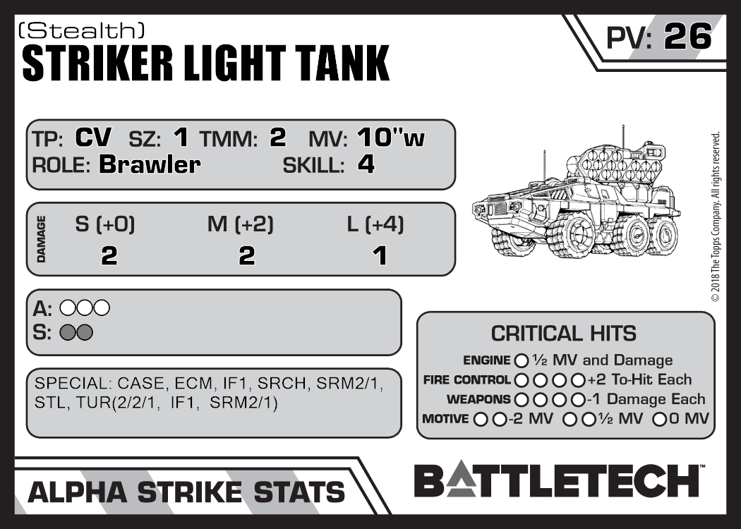| Striker Light Tank (Sealed) | 590 | 19 | Advanced | TR:3085 | |