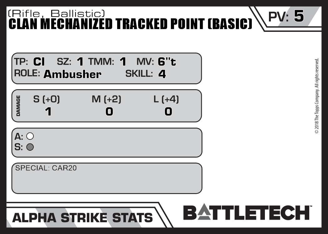 | Clan Mechanized Tracked Point (Basic) (MG) | 67 | 5 | Standard | TW | |